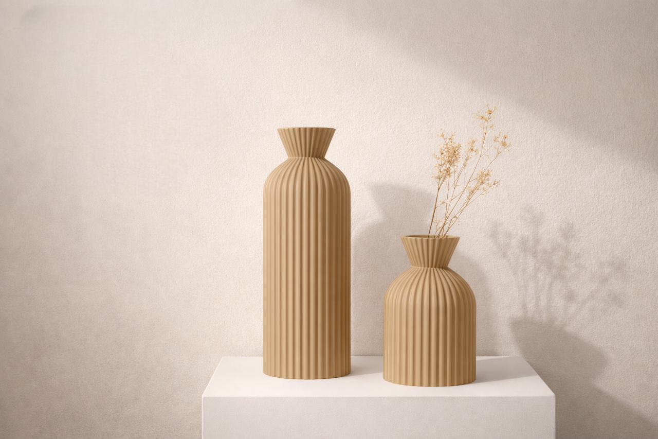 Designed as refined decor pieces, these sculptural vases bring a sense of calm and artistic balance to modern interiors. Their soft matte finish and timeless form make them perfect as standalone accents or styled with dried florals.